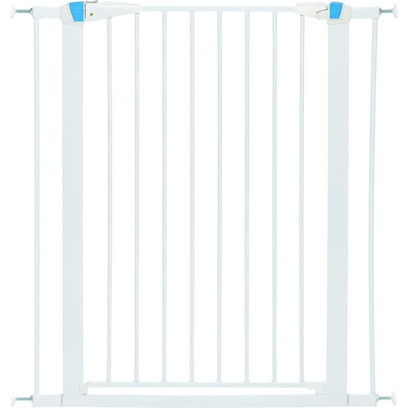 Forget stubbing your toe running into your gate or waking everybody up by turning on the lights. The Glow in the Dark Steel Pet Gate by MidWest has phosphorescent glow strips to allow you to see your gate's position and locate the latch at night. This gate is constructed of durable steel with an attractive graphite finish. Wall-safe pressure mounts keep your gate tightly and securely in place. The door design allows you to easily open the gate with one hand and automatically closes and locks behind you. The 19-inch-wide door swings in either direction for easy walk-through.